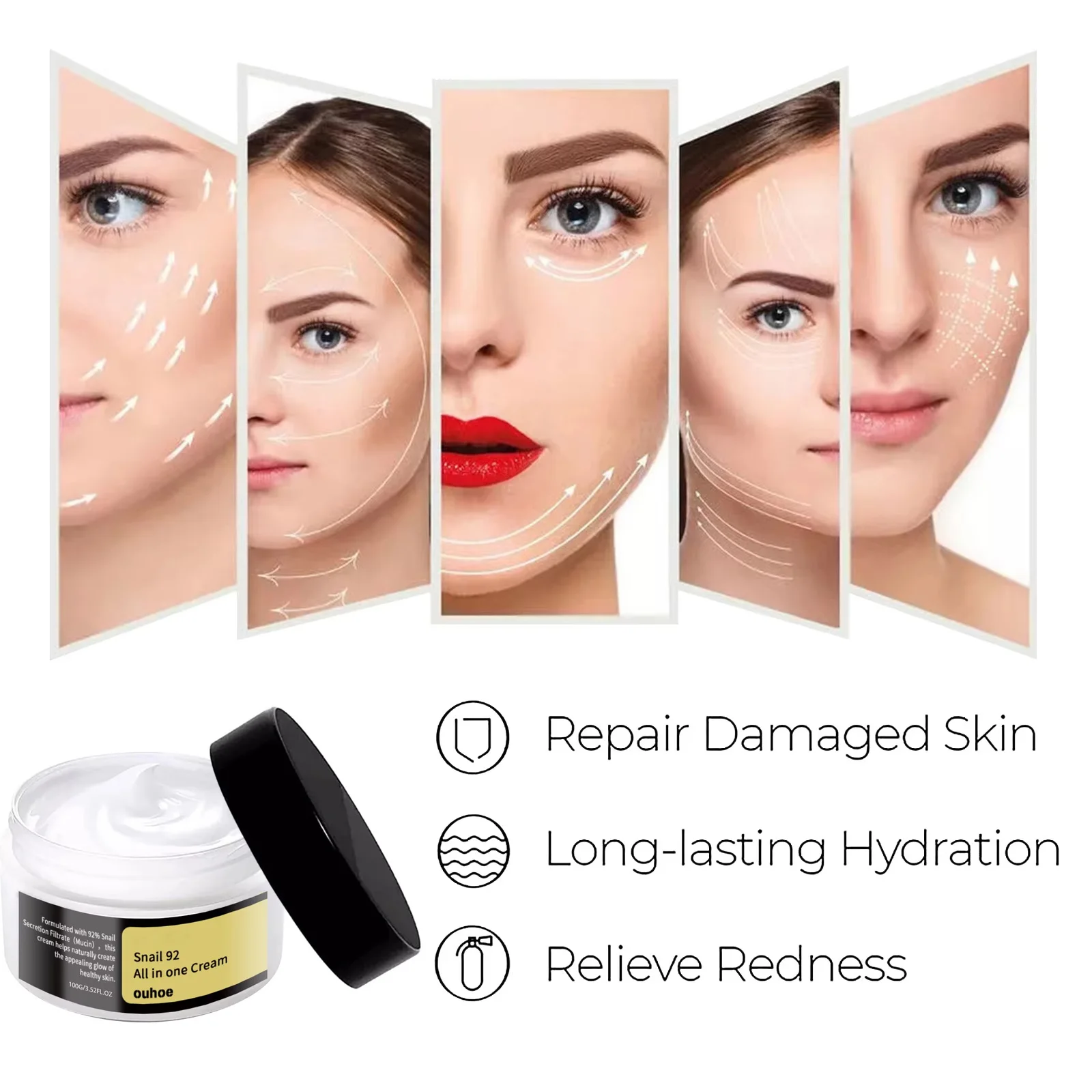 Enriched with snail secretion filtrate, collagen support, and hyaluronic acid, it improves elasticity, reduces fine lines, and enhances skin softness.